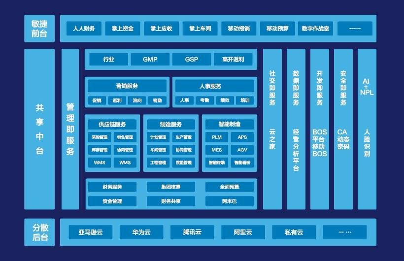 這么多系統(tǒng)中以誰為主數(shù)據(jù)呢?誰管理全、信息量大,我覺得一定是ERP系統(tǒng),也就是金蝶云。它是核心的管理層,所以我們設計系統(tǒng)的時候一定以它為主,其他系統(tǒng)都以ERP為維度建立自己的數(shù)據(jù)體系,保證它們之間是完全互聯(lián)互通的,我覺得這是大家構建這個體系必須要遵循的。