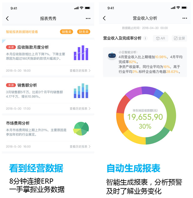 宋凱認為,每個人都擁有數(shù)據(jù)權(quán)利,只有獲得與自己相關(guān)的經(jīng)營信息,才能喚醒數(shù)據(jù)價值。云之家V10推出的“報表秀秀”,可在8分鐘內(nèi)連接ERP,對不同角色提供分權(quán)限管理。企業(yè)可定制報表供員工訂閱,通過智能助理“小云”喚起數(shù)據(jù)隨時查看。